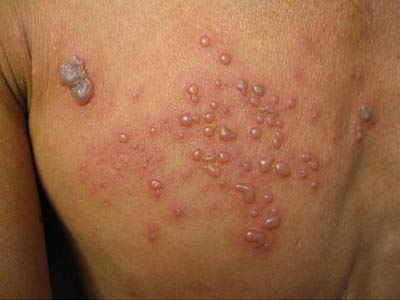 二、带状疱疹初期的症状一般都是皮肤组织受到很大的损害,一般在炎症出现后会慢慢的形成丘疹,再由丘疹变成为水疱,它会沿着皮肤损坏的地方分布,而且还排列成带状,有一定的分辨性,很容易诊断出来,在每个水疱的中间皮肤没有损害,若护理的好,不让患处周围受到感染的话,过些天后,水疱就会干涸,但一般痊愈后不会留下疤痕。