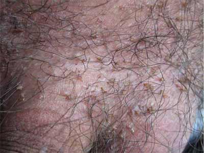 严重的患者有时在被叮咬后,还可以看到有一些豆大的青斑,这也是诊断阴虱的一个主要依据,一般青斑不痛不痒,按压也不消失,可以持续很长时间不退去。如果是患病严重的患者,阴虱还会自身传播,移动到有毛发的地方,如头发、眉毛、腋窝等处。