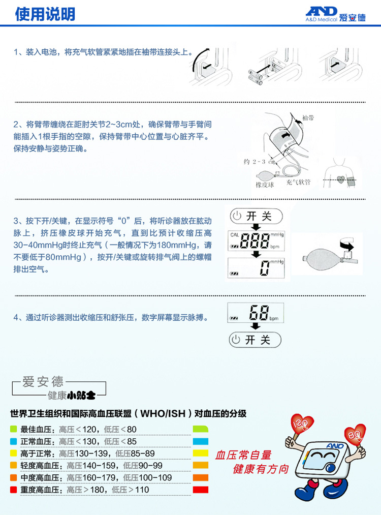 | 适用范围 | 适用于测量成人的收缩压、舒张压及脉率。 |