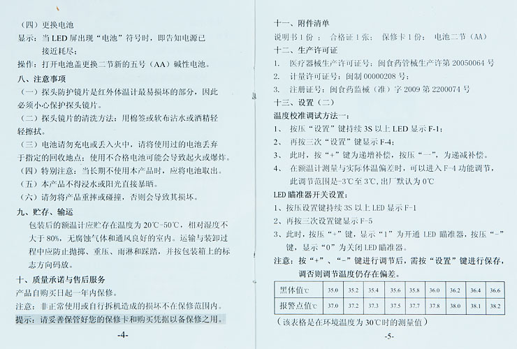 | 用途 | 分别适用于耳温和额温的测量。 | |